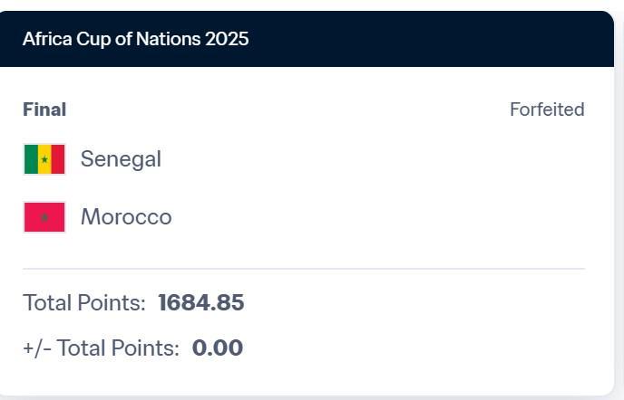 此前,因非洲足联裁定,在2025非洲杯决赛中,塞内加尔因主动弃赛被判负于摩洛哥,因此该场比赛赛果从原本的塞内加尔1-0摩洛哥变成了塞内加尔0-3摩洛哥。其原本应得的21.98积分被调整为0分,因此排名下降两位;摩洛哥则因裁定获胜,获得了18.02积分,排名随之上升。